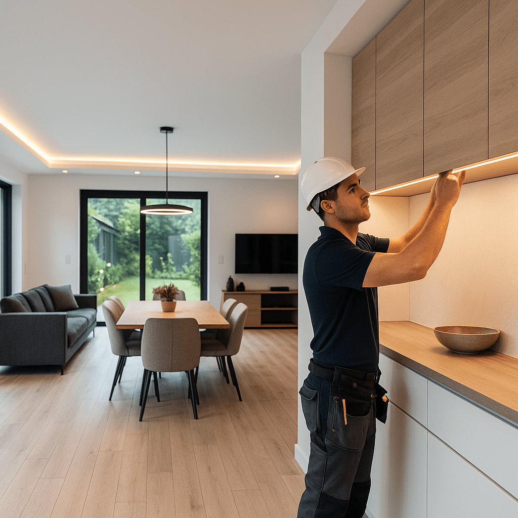 Instalaciones eléctricas modernas, automatización del hogar y control total desde tu móvil. Seguridad, eficiencia y tecnología al servicio de tu espacio.